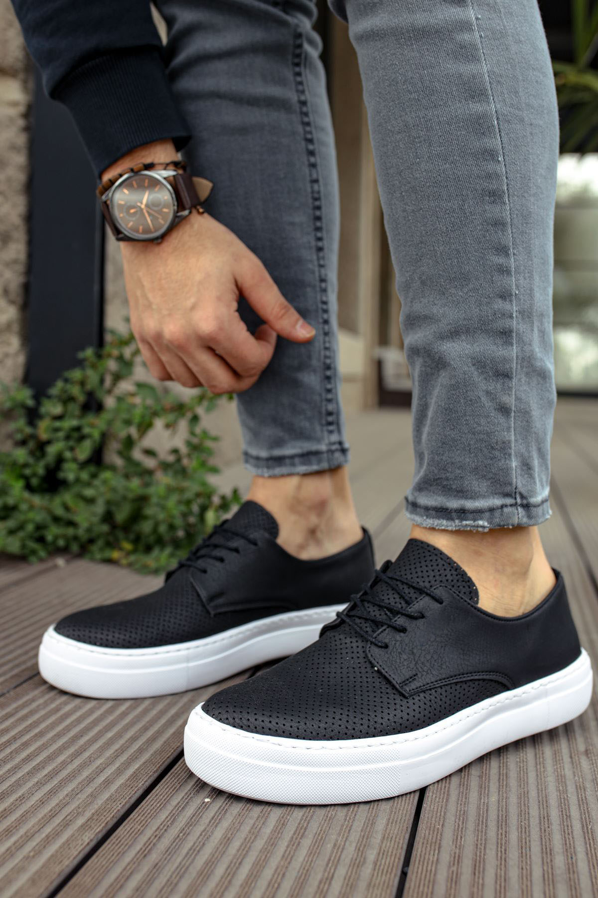 MirgeShoes Siyah Bağcıklı Erkek Loafer Ayakkabı Kalın BYZ Taban MRG010602379