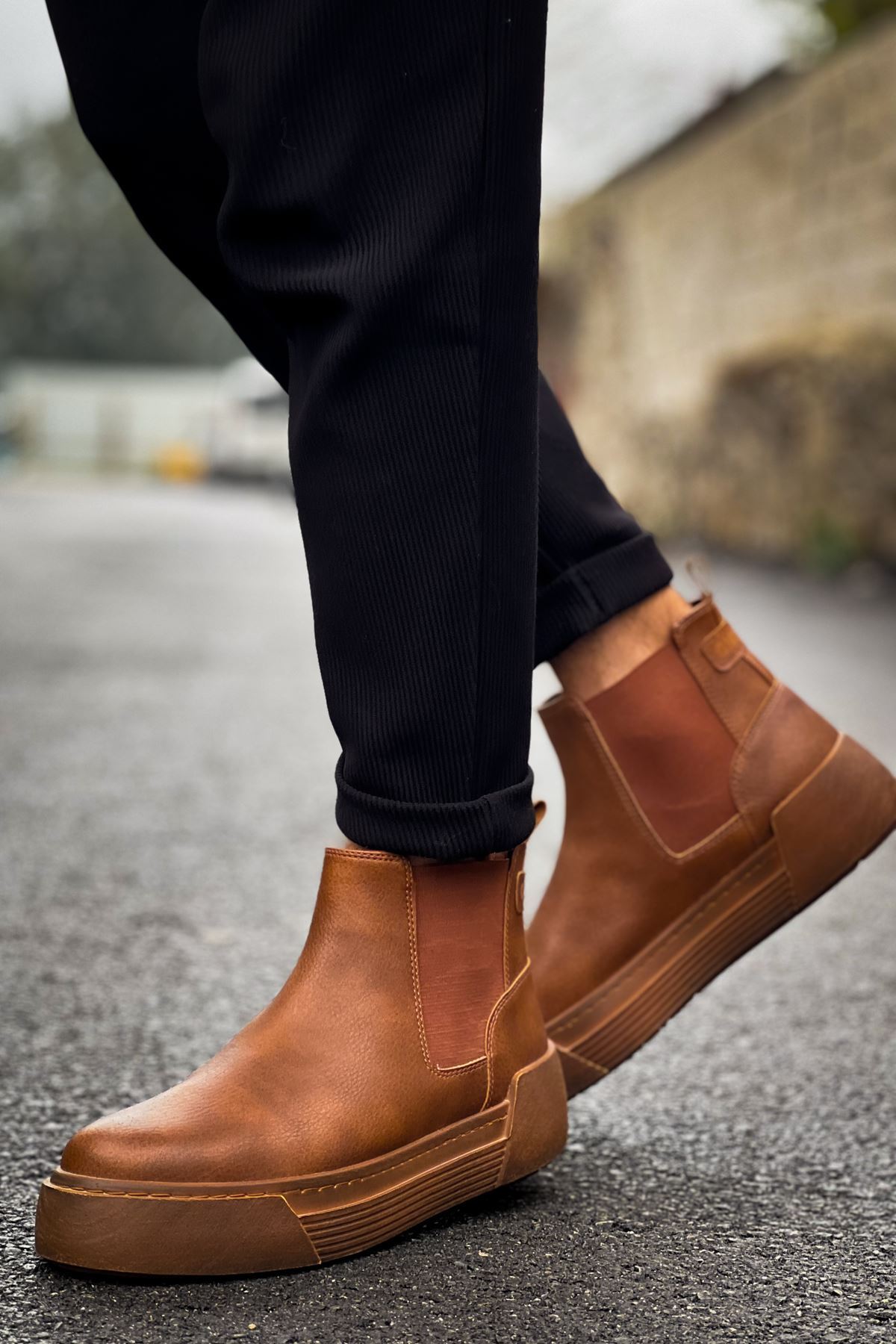 MirgeShoes Taba Bağcıksız Erkek Chelsea Bot Lastikli Kalın TB Taban MRG010602387