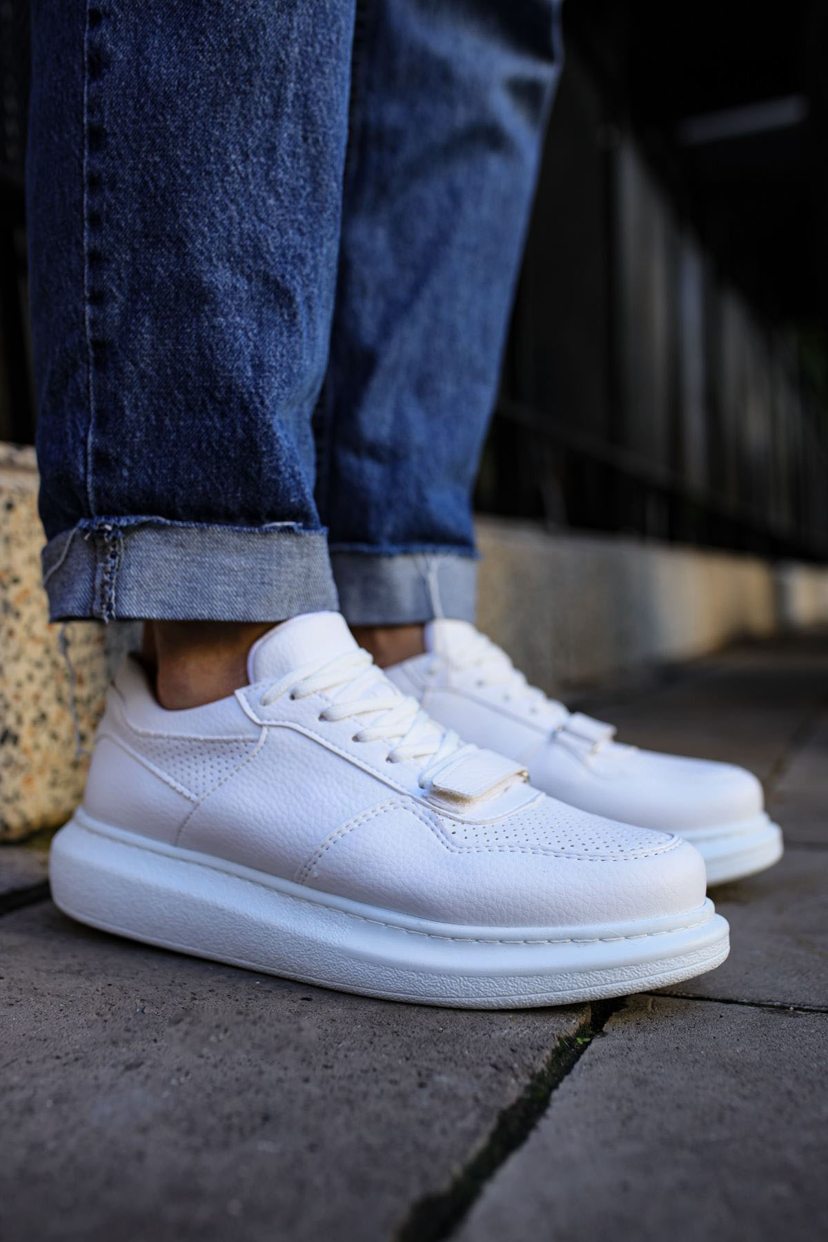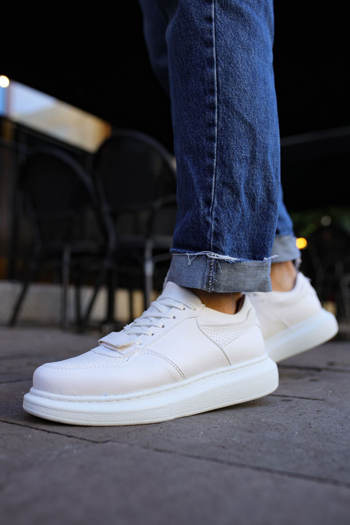 • MirgeShoes Beyaz Bağcıklı Erkek Spor Ayakkabı Kalın BYZ Taban MRG01062391