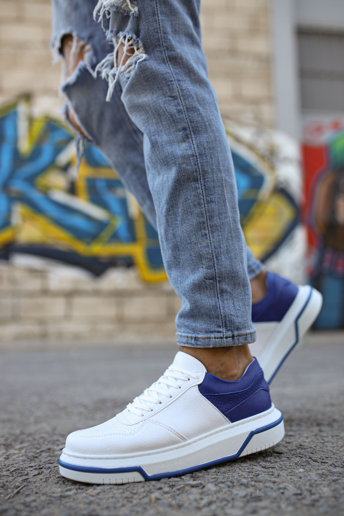• MirgeShoes Beyaz-Mavi Bağcıklı Unisex Casual Ayakkabı Modelli Kalın BYZ Taban MRG010602393