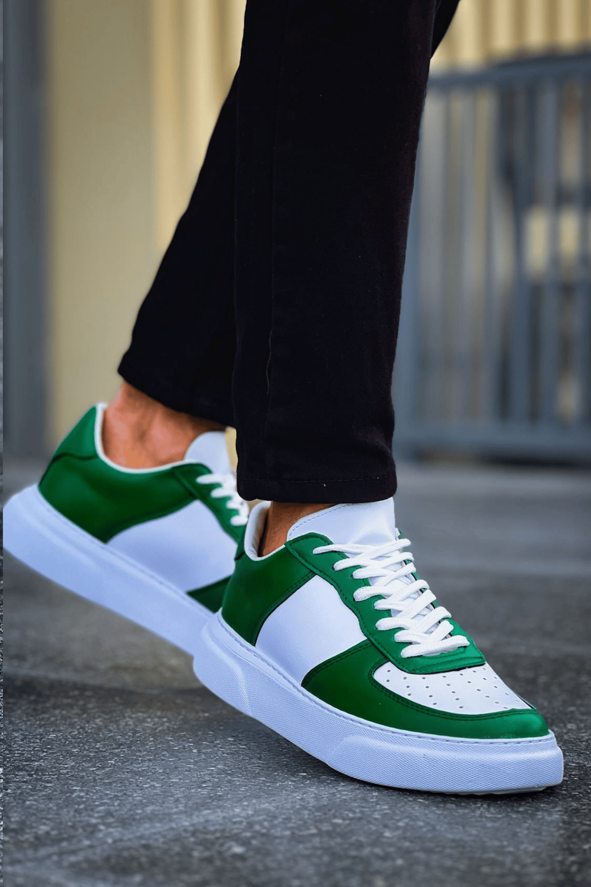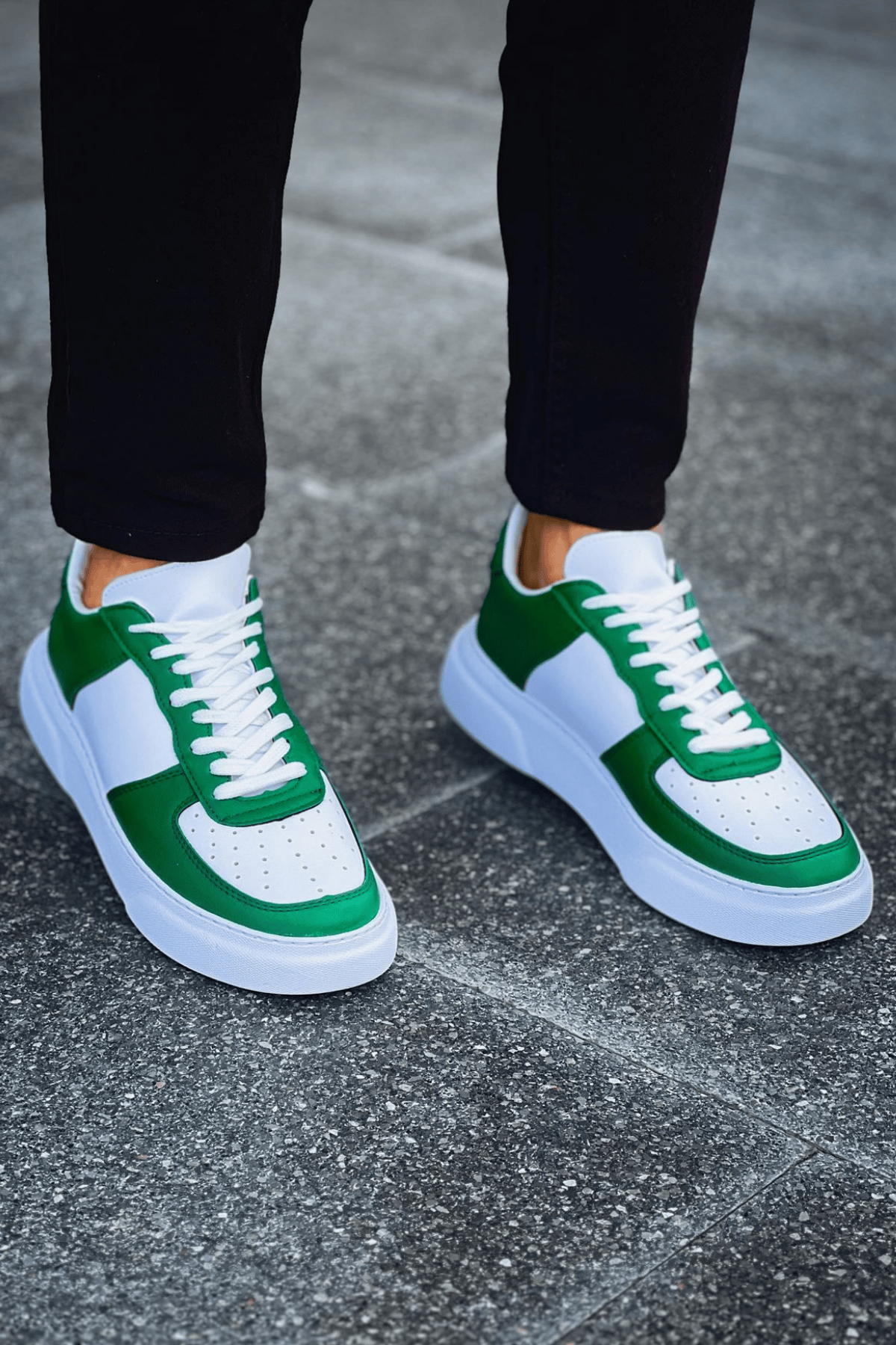 • MirgeShoes Beyaz-Yeşil Bağcıklı Erkek Spor Ayakkabı Düz Model Kalın BYZ Taban MRG010602405