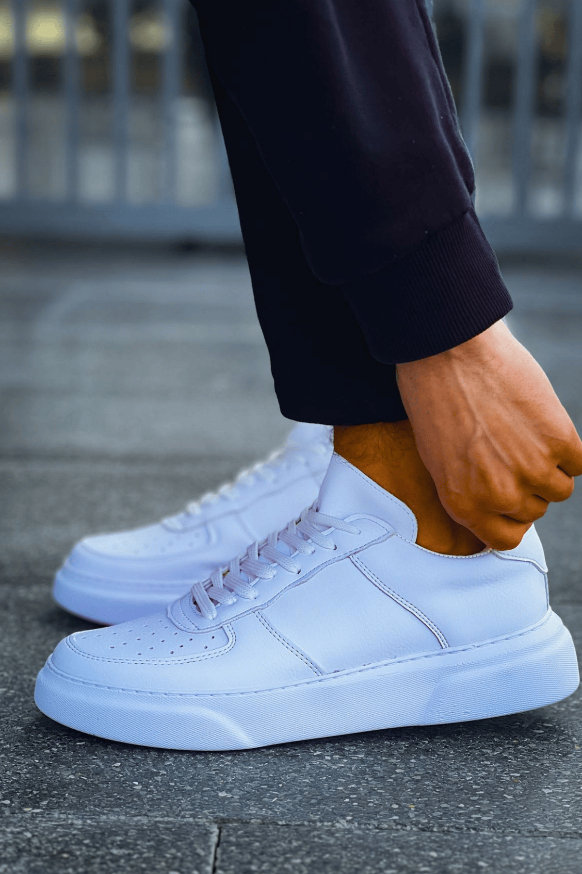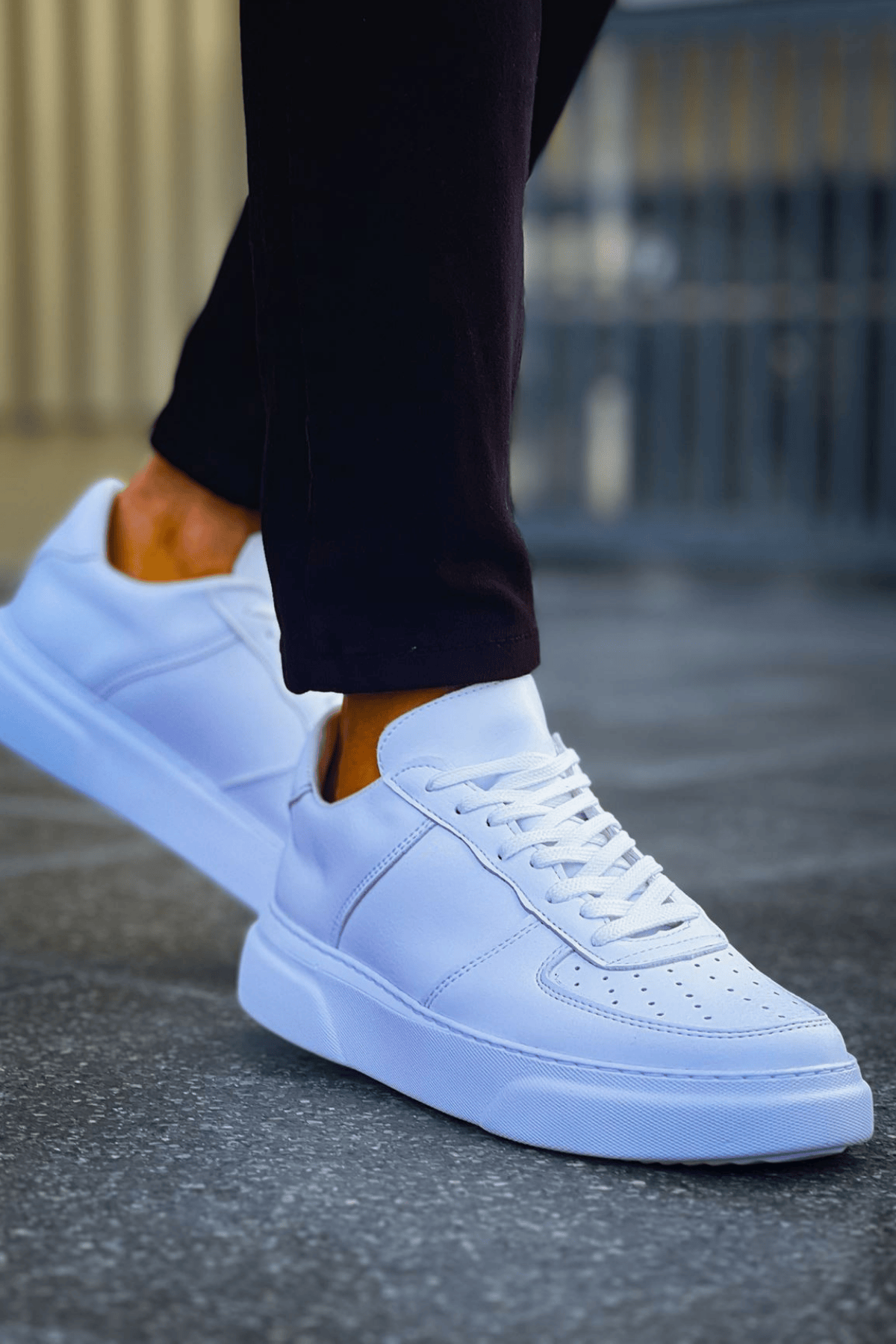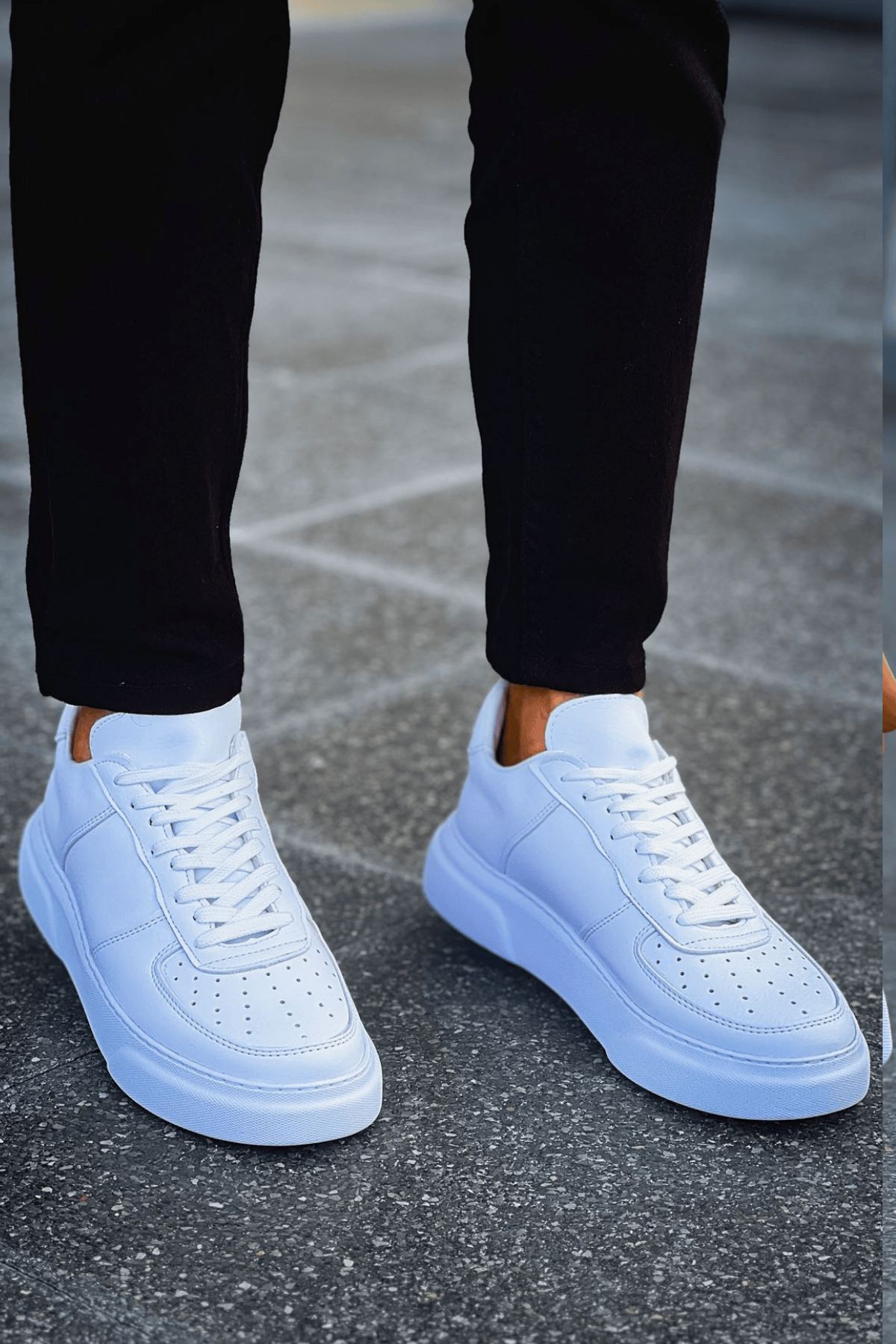 • MirgeShoes Beyaz Bağcıklı Erkek Spor Ayakkabı Düz Model Kalın BYZ Taban MRG010602405