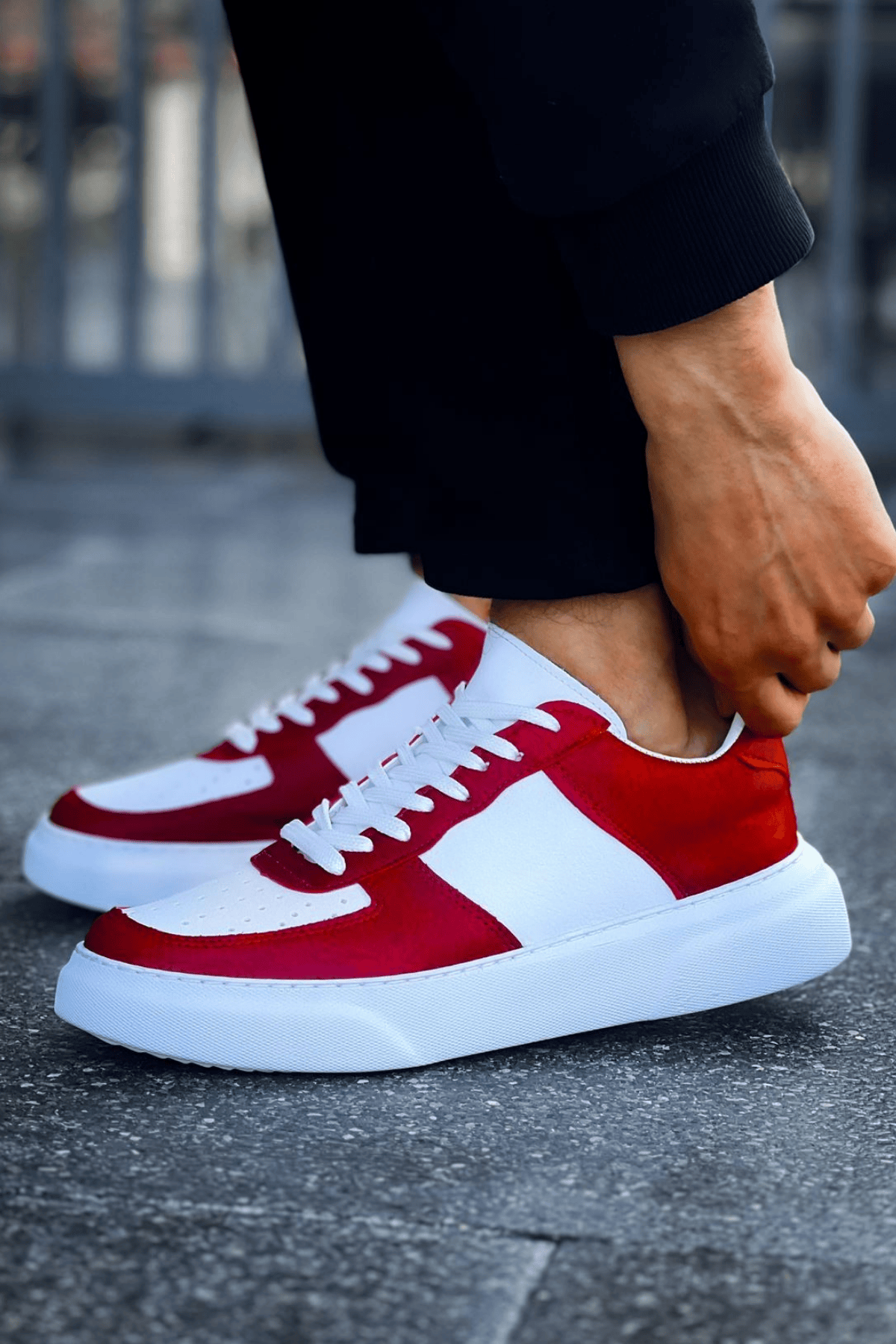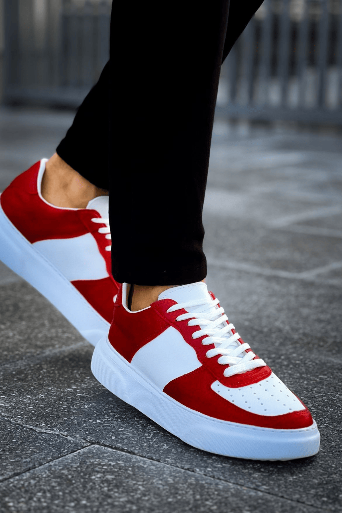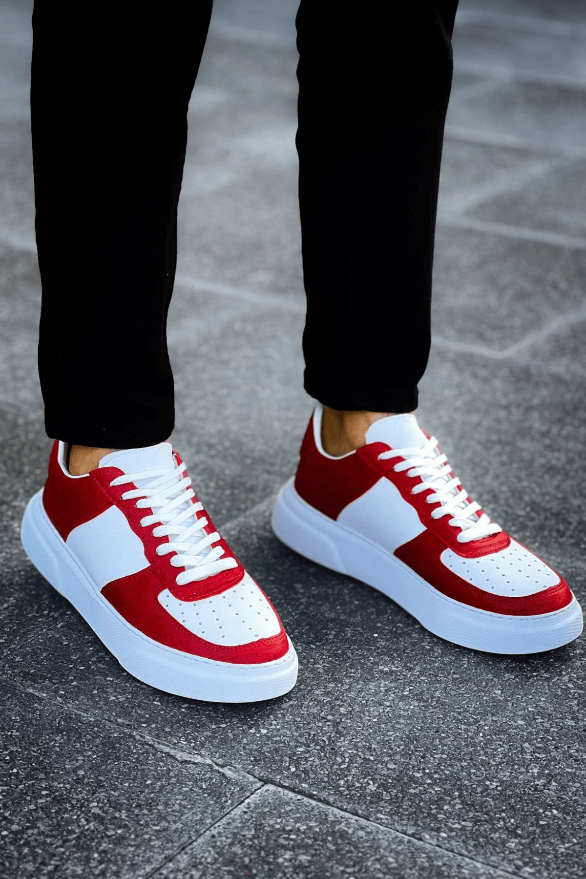 MirgeShoes Kırmızı-Beyaz Bağcıklı Erkek Spor Ayakkabı Düz Model Kalın BYZ Taban MRG010602405