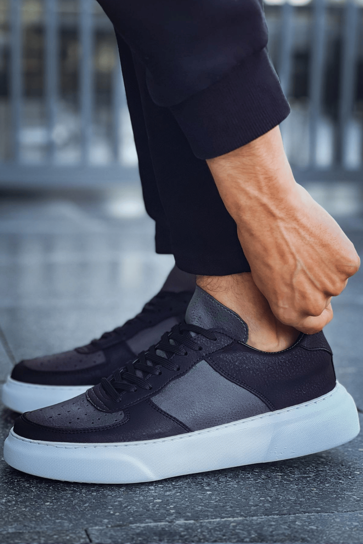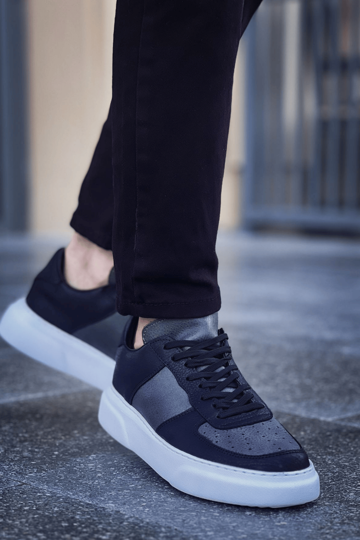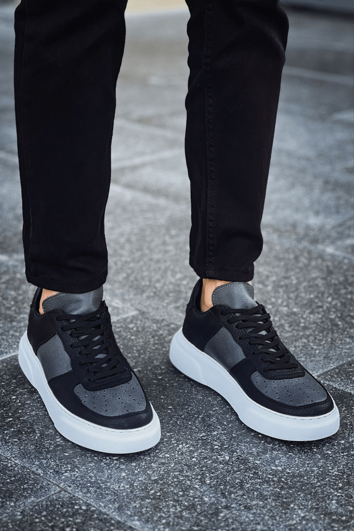 • MirgeShoes Siyah-Antrasit Bağcıklı Erkek Spor Ayakkabı Düz Model Kalın BYZ Taban MRG010602405