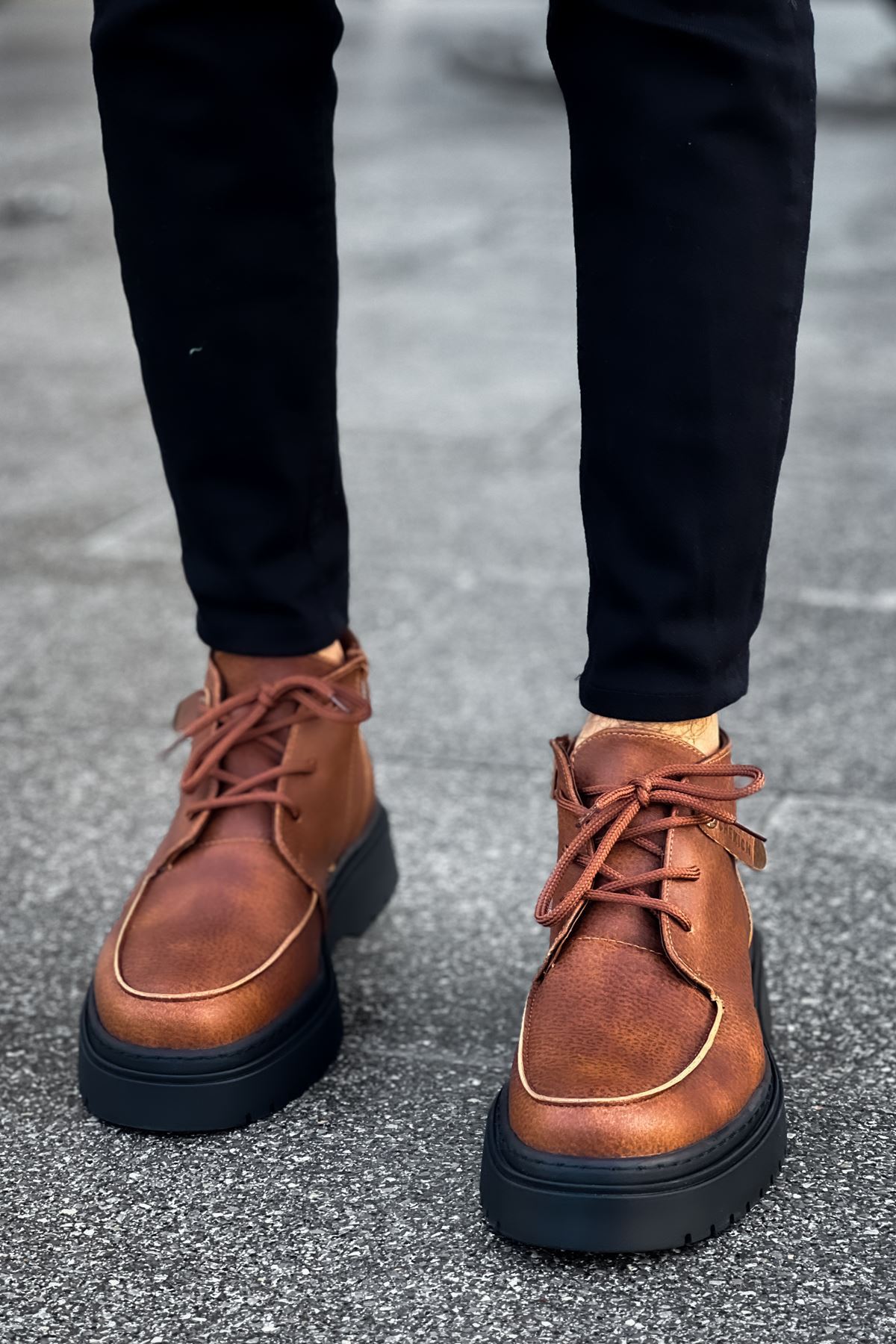 • MirgeShoes Koyu Taba Bağcıklı Fermuarlı Erkek Yarım Bilek Bot Kalın SYH Taban MRG01062531