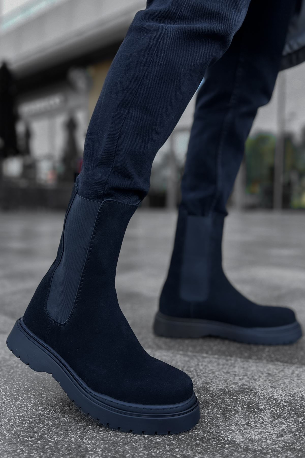 MirgeShoes Siyah Lastikli Erkek Postal Bot Süet Kalın SYH Taban MRG01062541