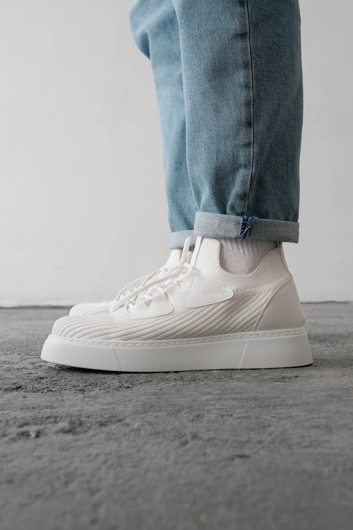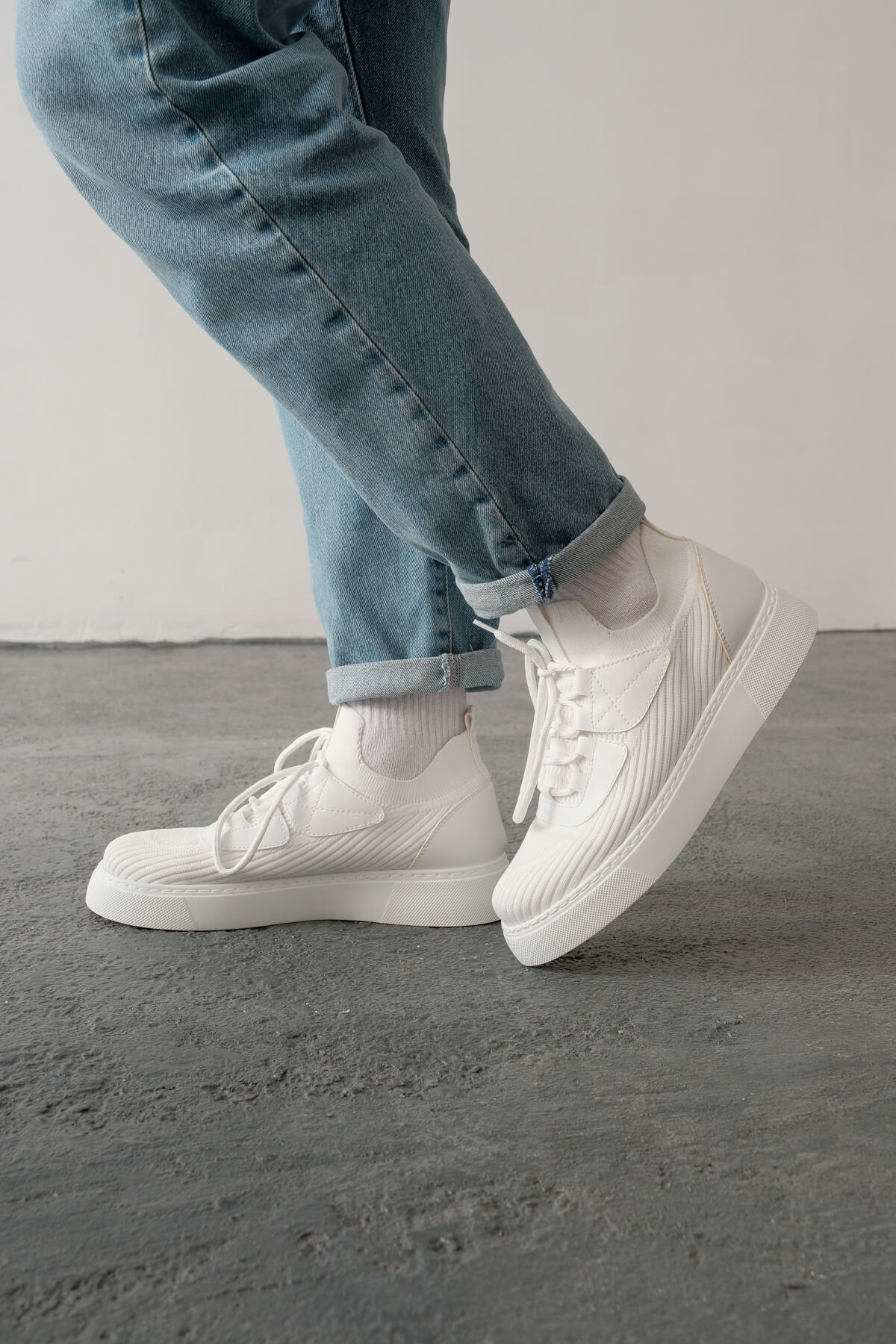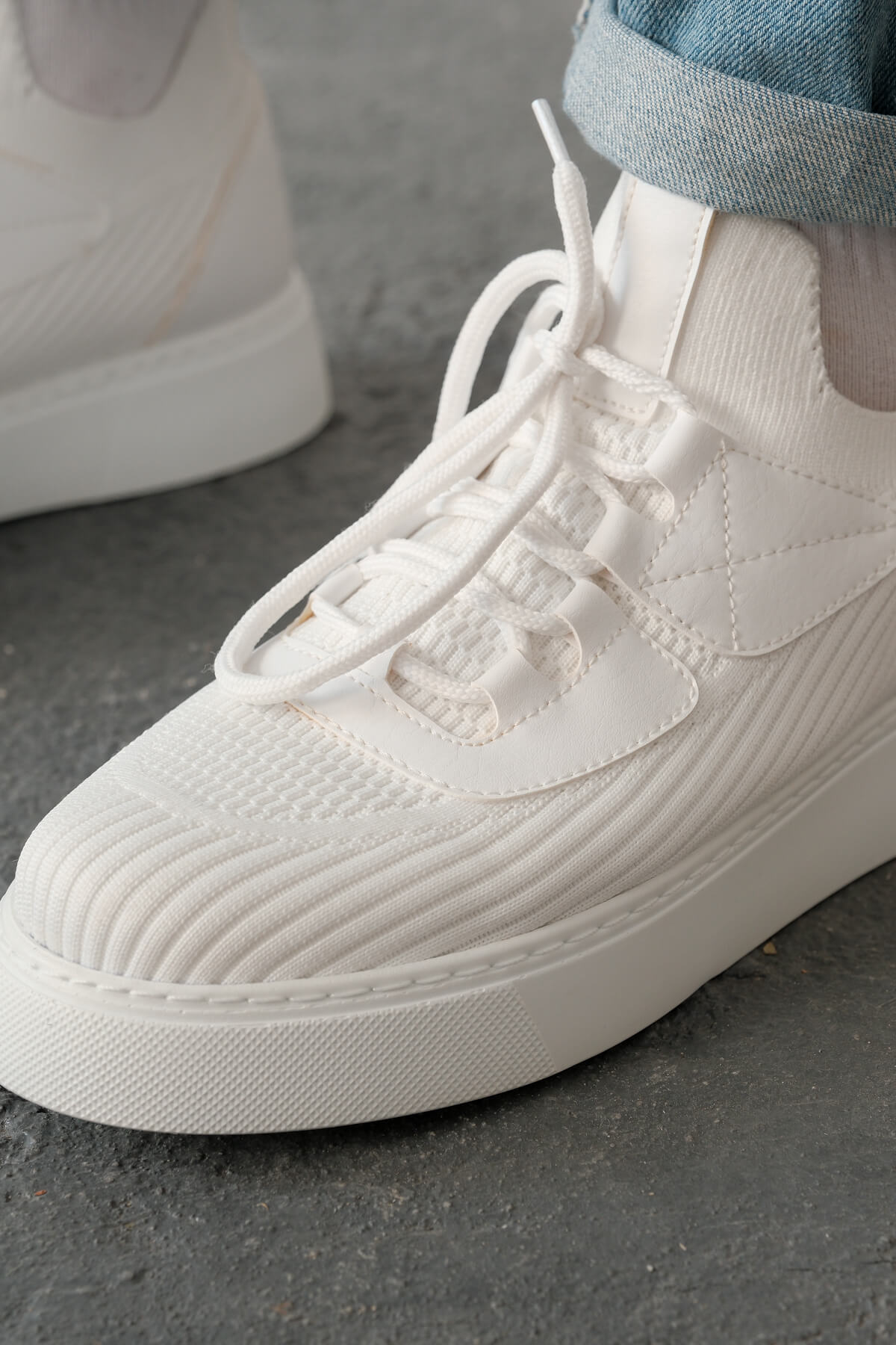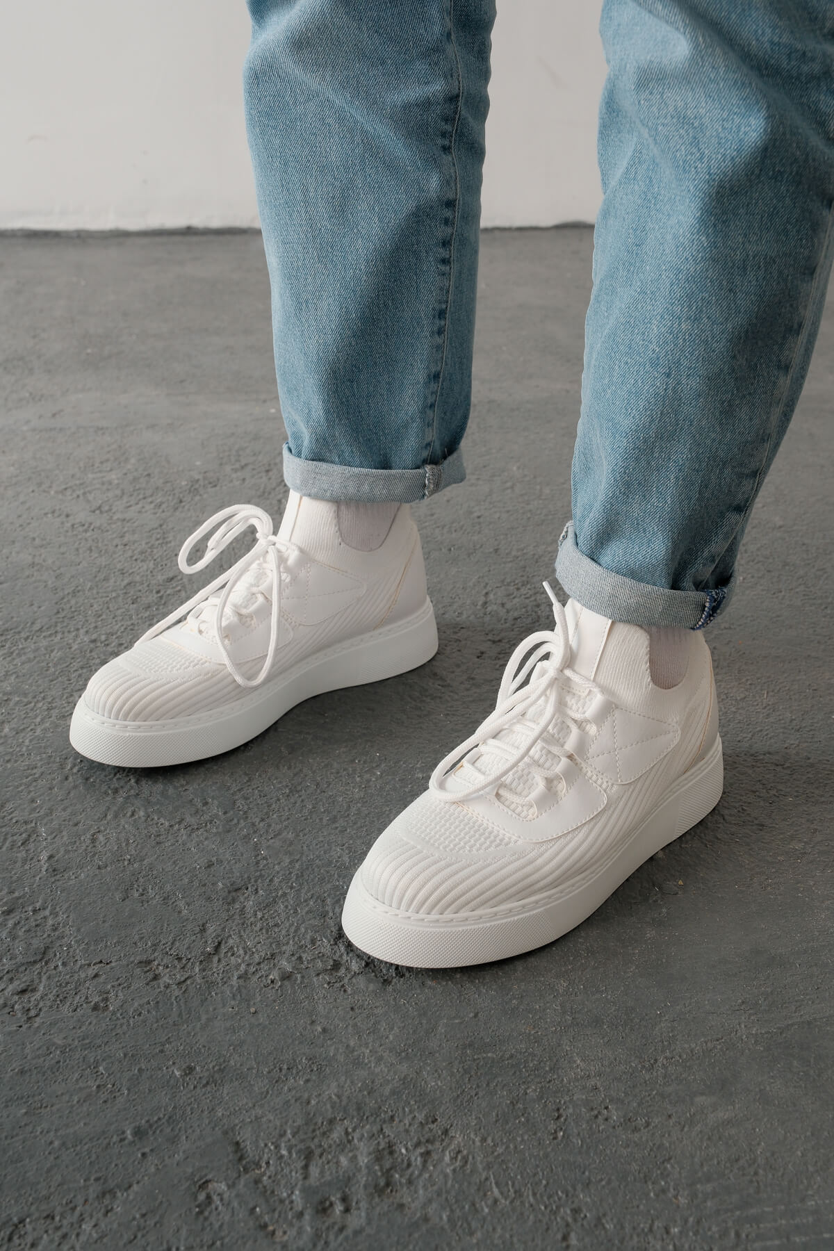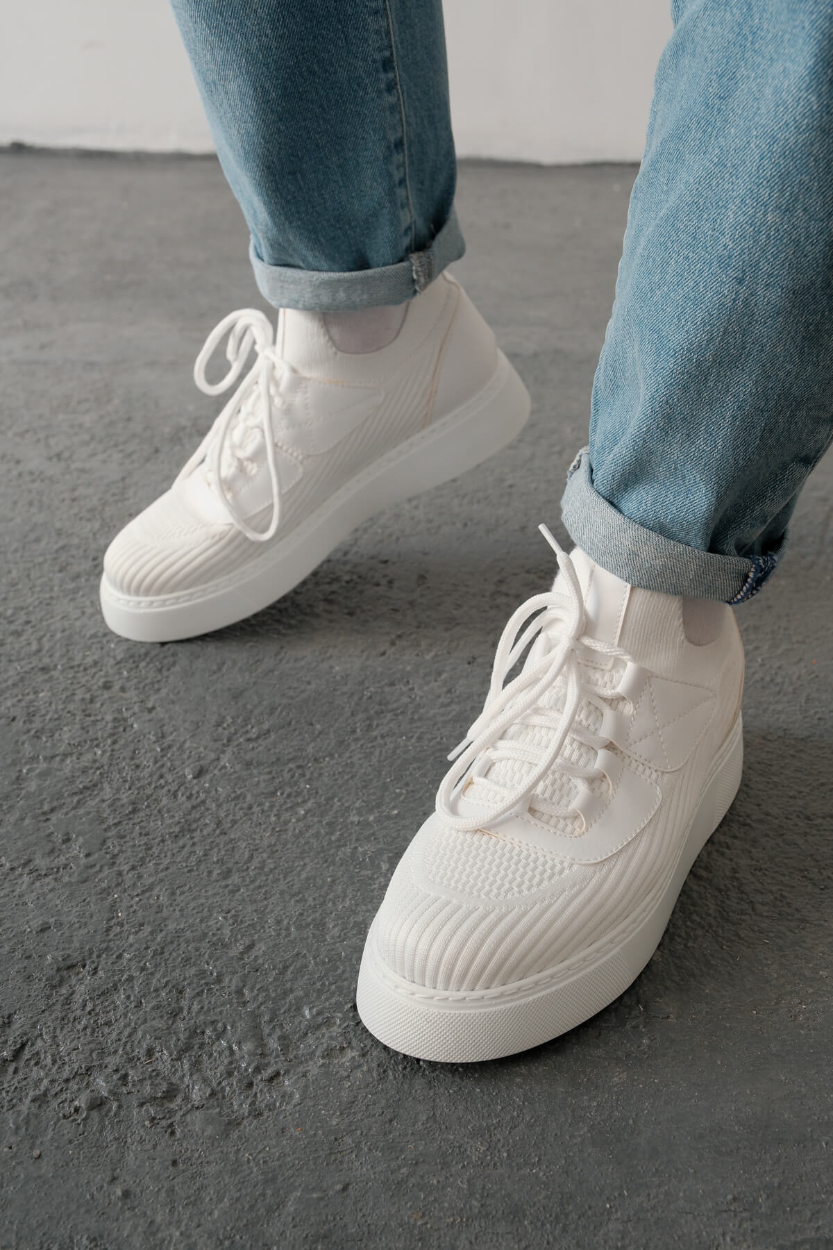 • MirgeShoes Beyaz Bağcıklı Erkek Günlük Ayakkabı Rahat Kalın BYZ Taban MRG01064743