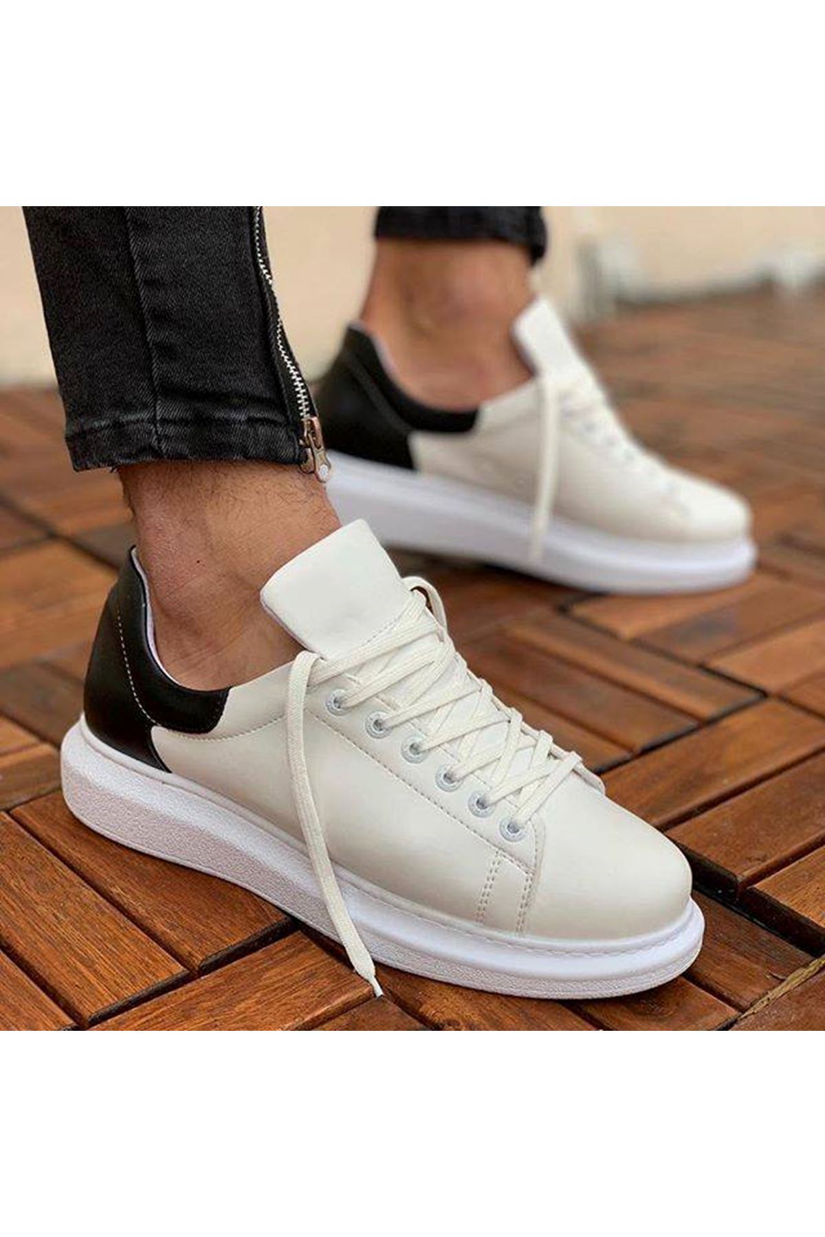 MirgeShoes Beyaz-Siyah Bağcıklı Unisex Spor Ayakkabı Kalın BYZ Taban MRG01062574