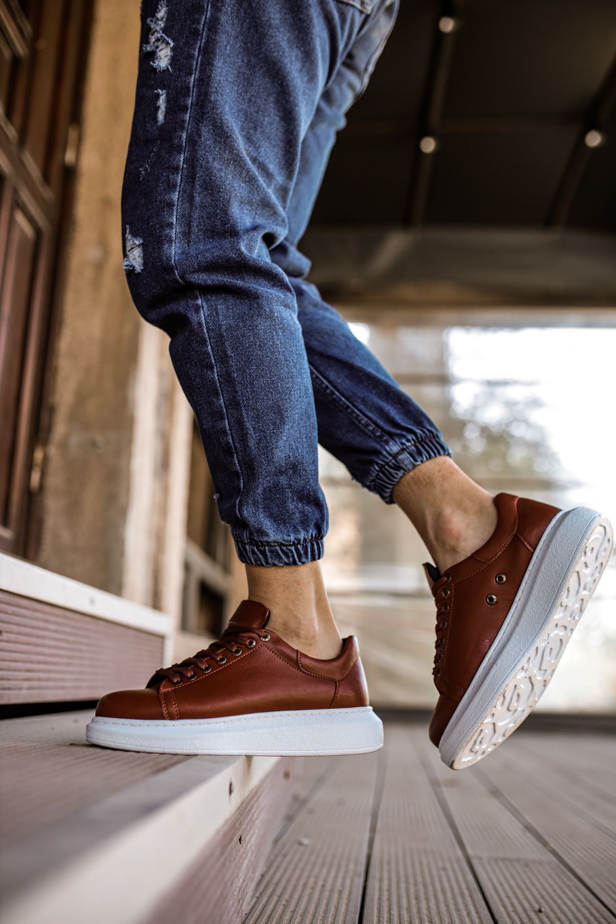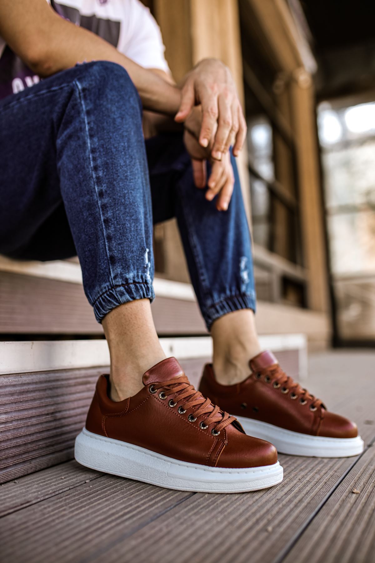 MirgeShoes Taba Bağcıklı Unisex Günlük Ayakkabı Yüksek Kalın BYZ Taban MRG01062575