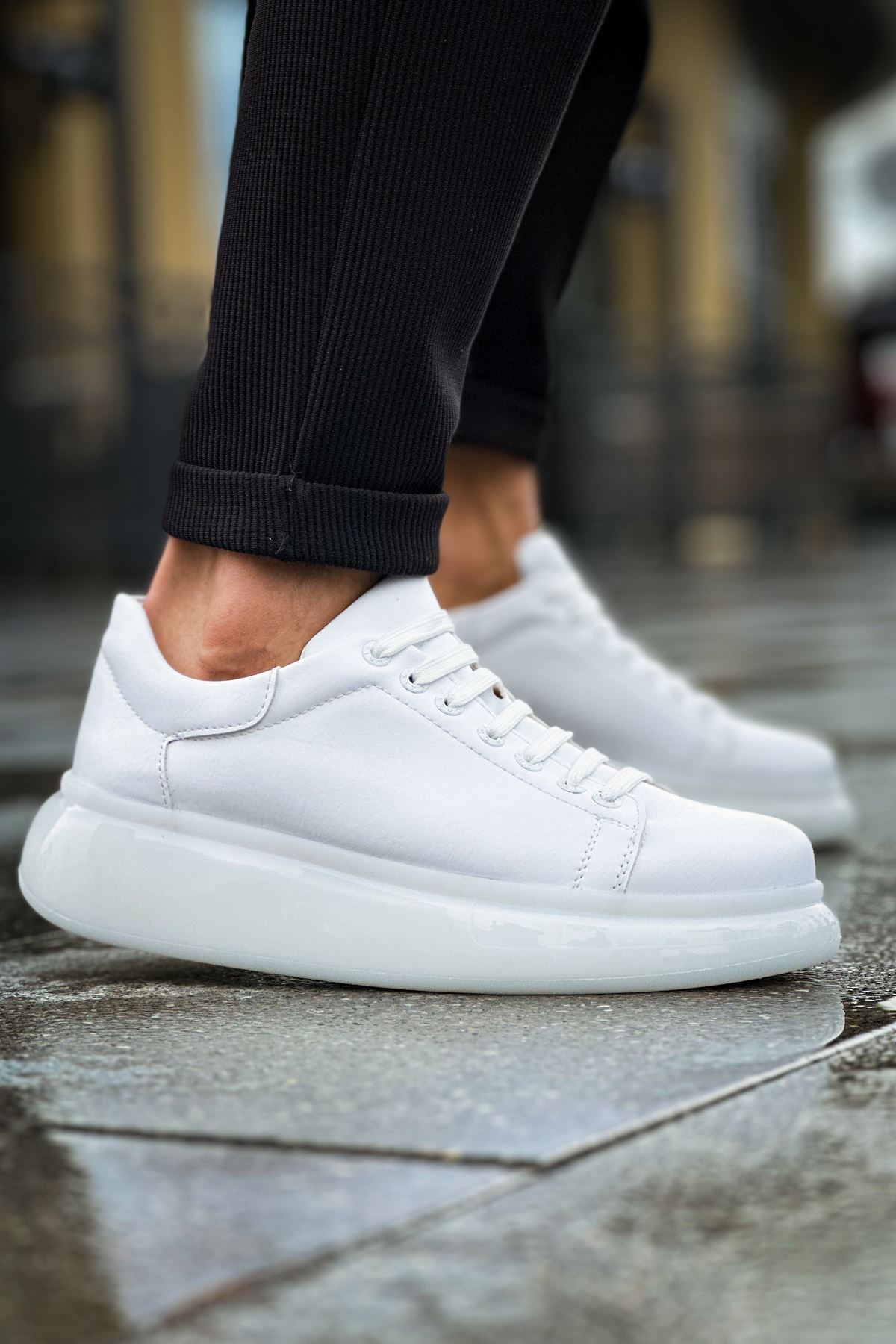 MirgeShoes Beyaz Bağcıklı Erkek Tarz Model Ayakkabı Yüksek Kalın BYZ Taban MRG01062613