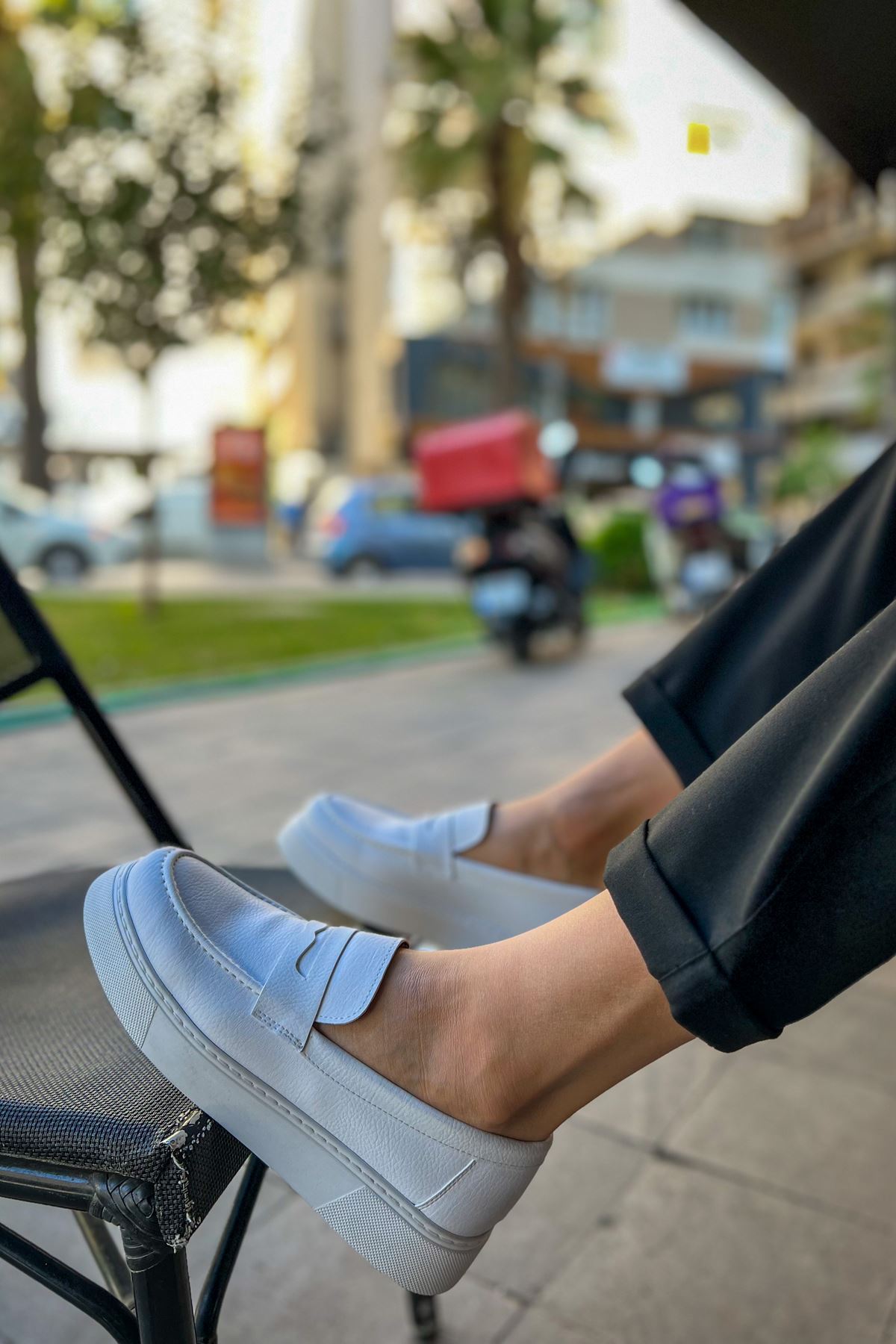 • MirgeShoes Beyaz Bağcıksız Erkek Loafer Ayakkabı Yüksek Kalın BYZ Taban MRG01062739