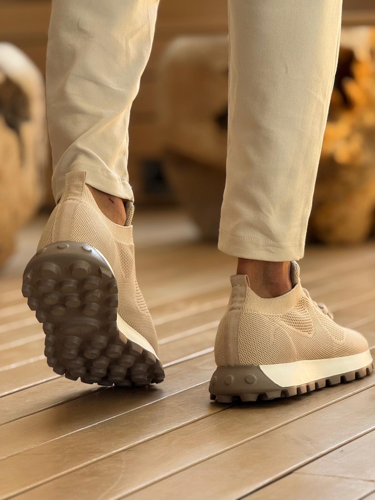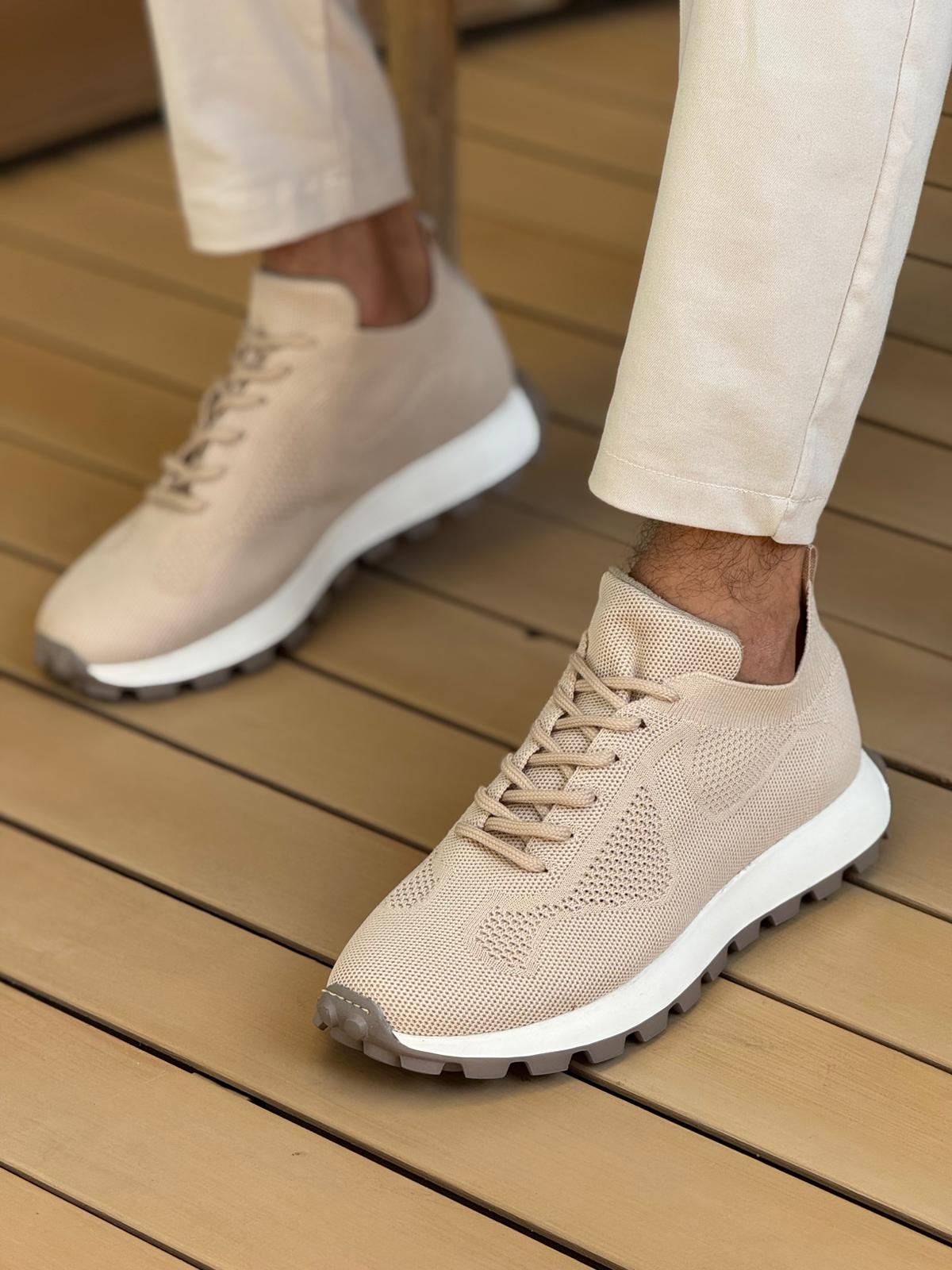 • MirgeShoes Bej Bağcıklı Erkek Spor Ayakkabı Triko Kalın BYZ Taban MRG01064727