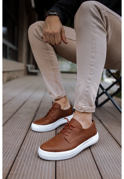 MirgeShoes Beyaz Bağcıklı Erkek Casual Ayakkabı Rahat Kalın BYZ Taban MRG01062937