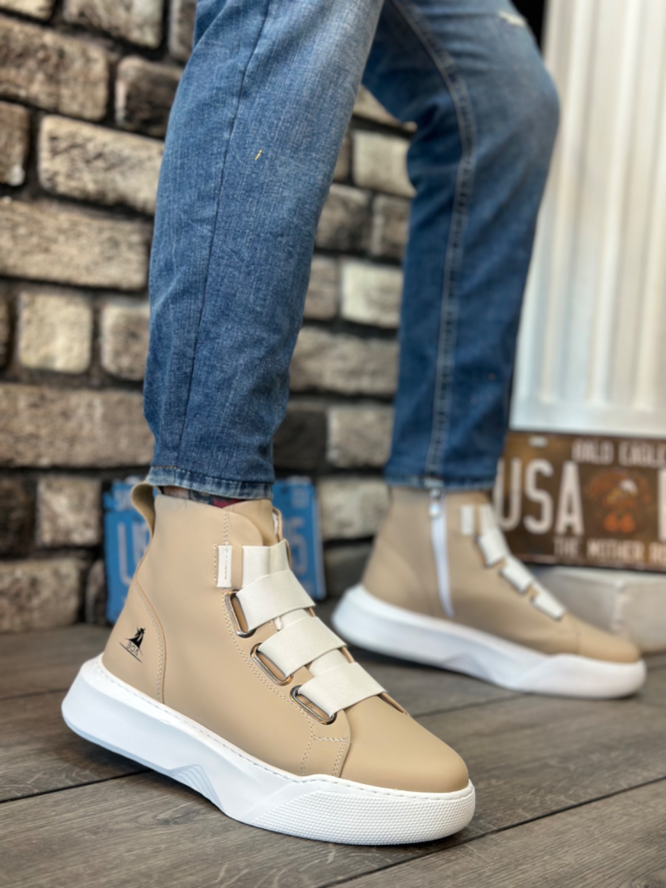 • MRG0142 Bantlı Erkek Yüksek Taban Krem Beyaz Spor Bot