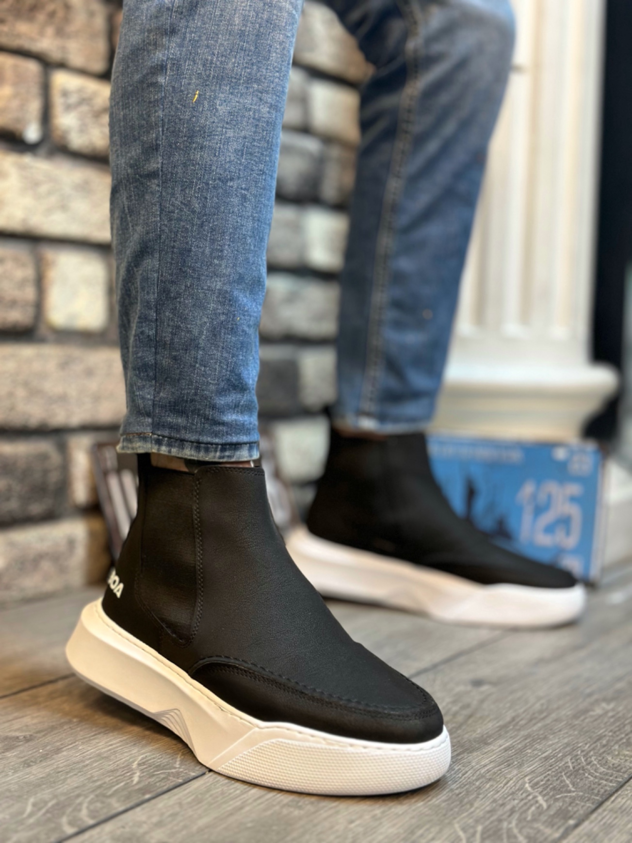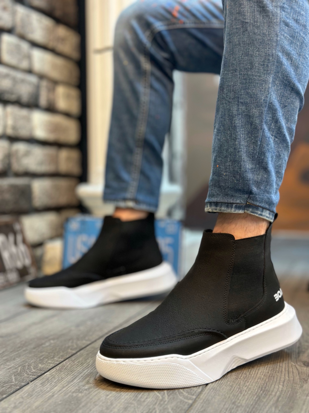 • MRG0150 Bağcıksız Erkek Yüksek Taban Cilt Siyah Beyaz Spor Bot