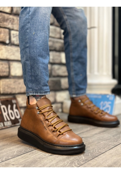 MRG0444 Bağcıksız Rahat Yüksek Taban Siyah Erkek Spor Yarım Bilek Bot