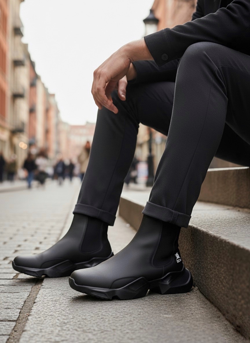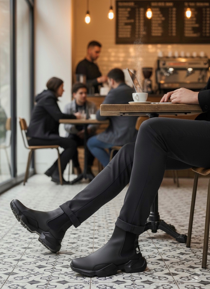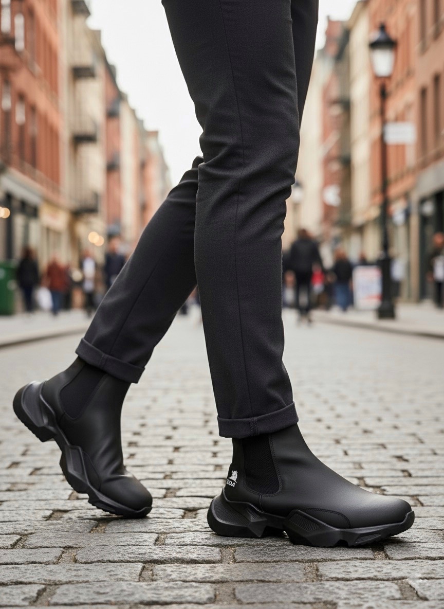 • MRG0444 Bağcıksız Rahat Yüksek Taban Siyah Erkek Spor Yarım Bilek Bot
