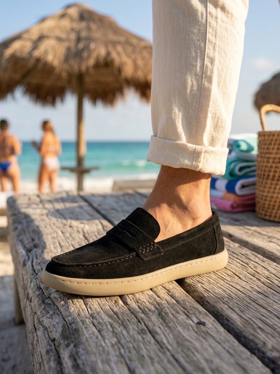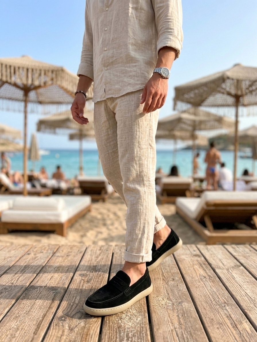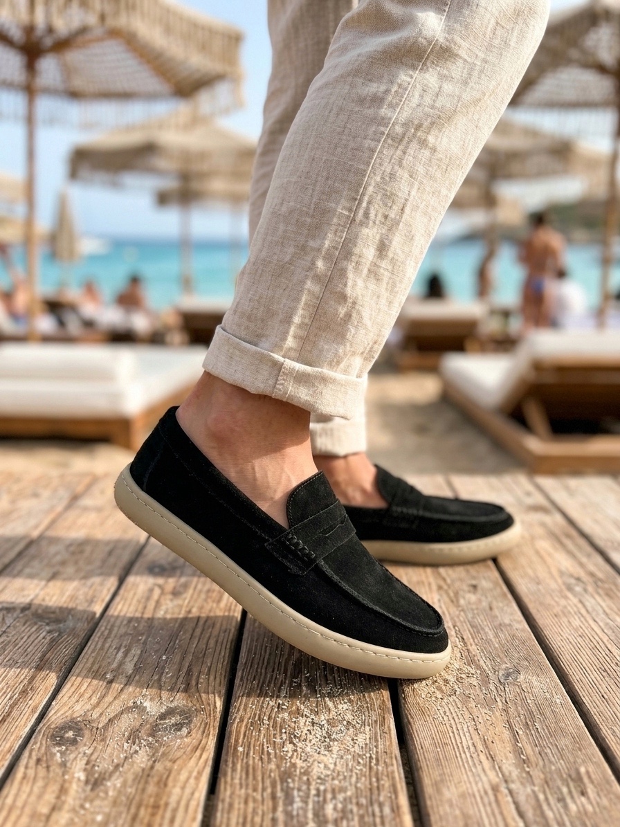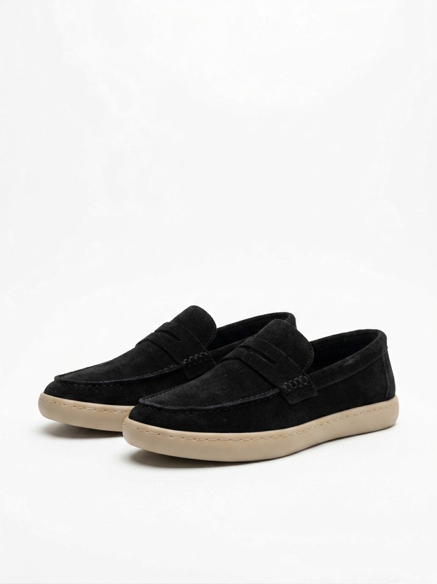 • MRG0251 %100 İçi Dışı Hakiki Deri Erkek Siyah Süet Casual Loafer Kauçuk Rahat Taban Dikişli Ayakkabı